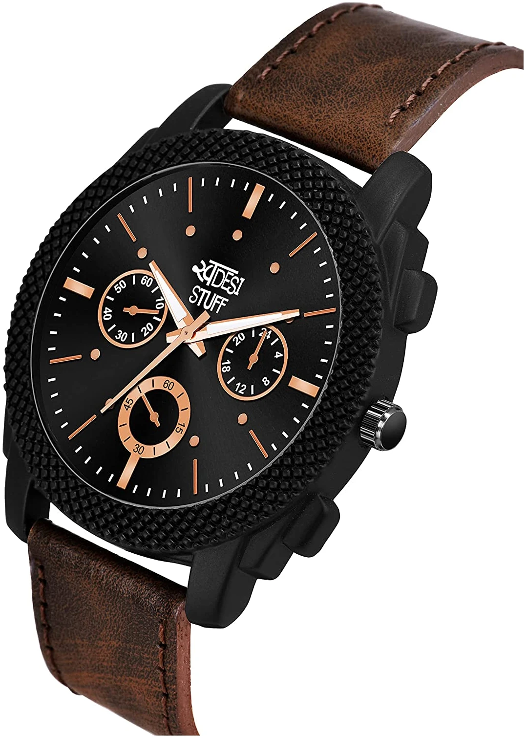 Black Dial Brown Leather Strap Stylish Analog Watch for Men