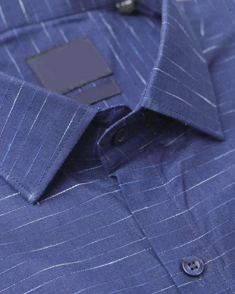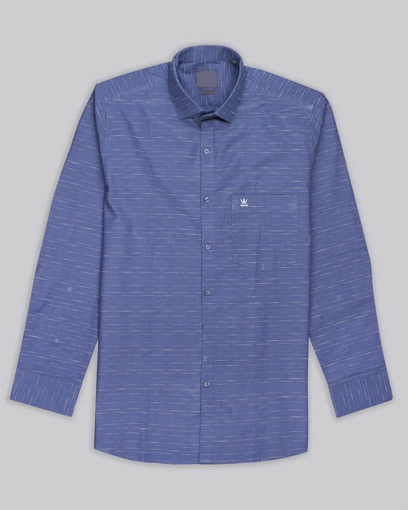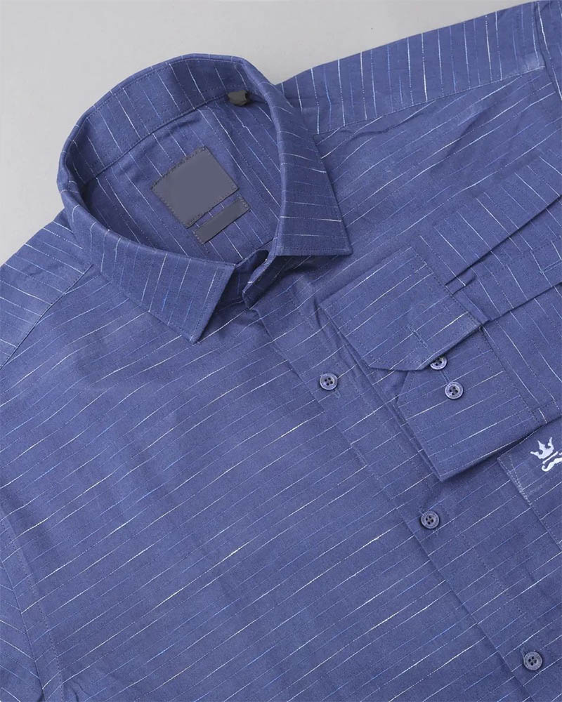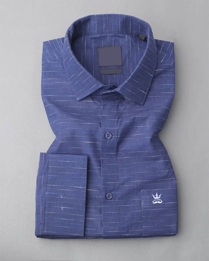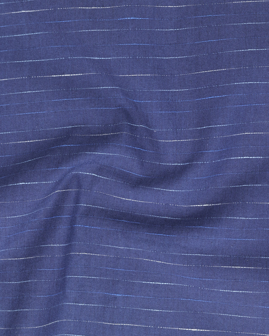 Denim Blue Striped Dobby Textured Premium Giza Cotton Shirt