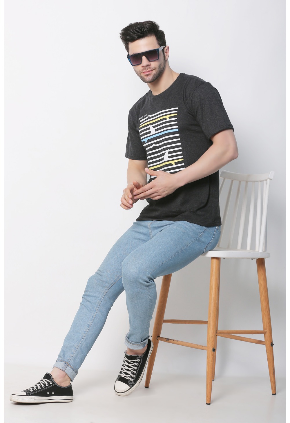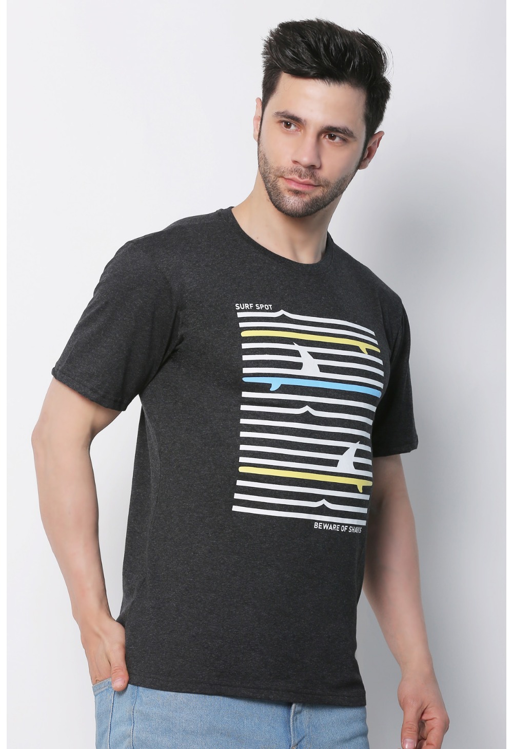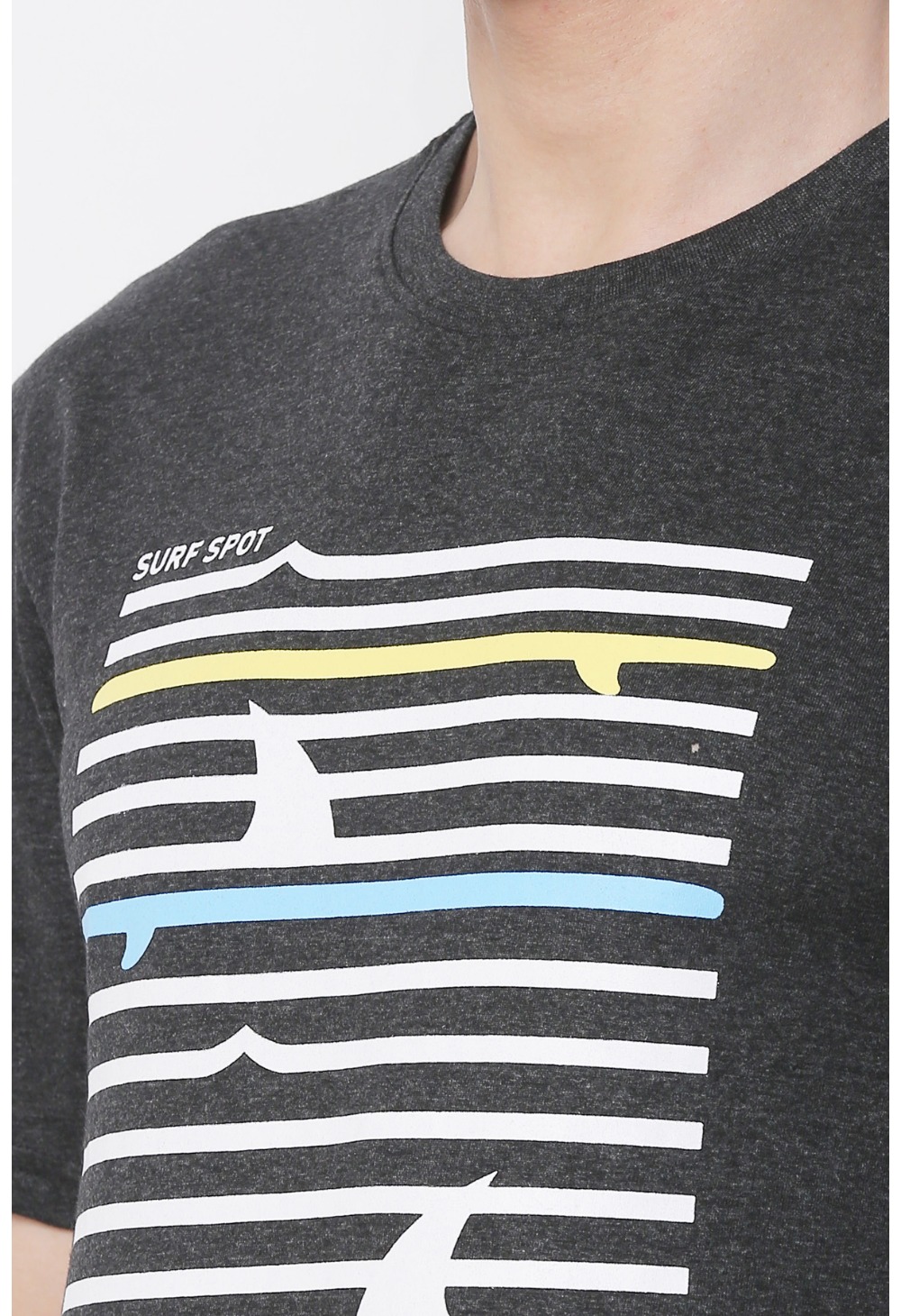 Men’s Cotton Jersey Round Neck Printed Tshirt (Charcoal Melange)