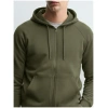 Featuring a front-open design with a convenient hood, this sweatshirt offers a modern, laid-back style while providing additional coverage against wind or light chills. The olive color adds a subtle, earthy tone that pairs well with jeans, joggers, or casual trousers, making it easy to incorporate into a variety of outfits. The front-open style also allows for quick and easy wear, enhancing both comfort and functionality.