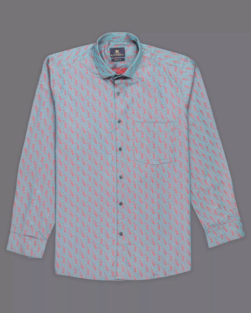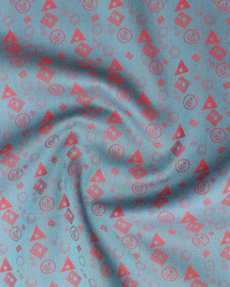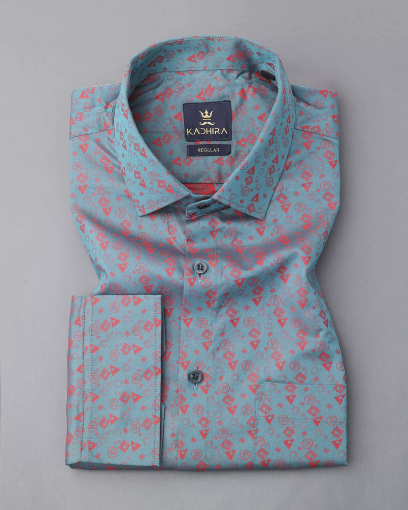 Sapphire Blue Geometrical Pattern Printed Cotton Shirt