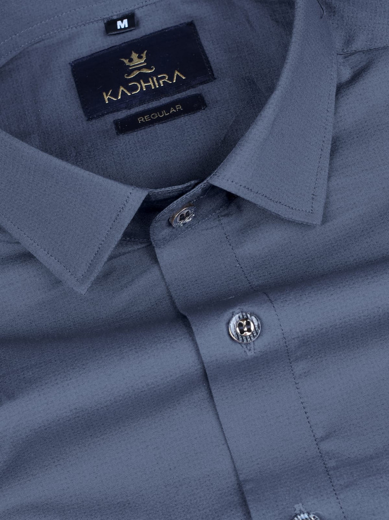 Slate Gray Solid Dobby Cotton Shirt